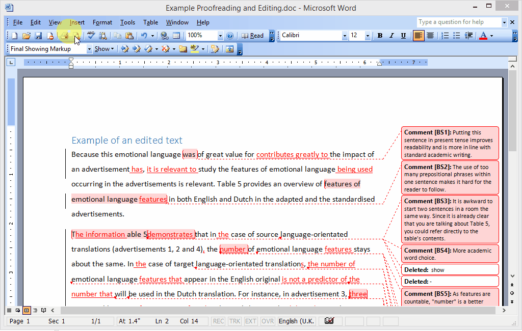 Don’t forget to do a final spell check to ensure your text is free of common errors, such as duplicated punctuation and double spaces. Once you’ve processed all the changes and deleted all the comments, the changes will no longer be visible to others. You can submit this document as your final version!